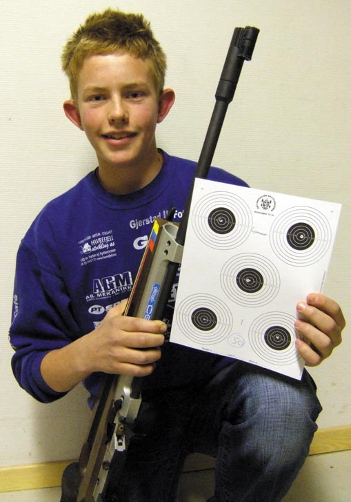 Under torsdagens premieskyting traff Gunnar Solvik (ER) 10'eren flere ganger enn noen andre. På sine 25 skudd var det bare 3 niere, og sluttsummen ble dermed hele 247 poeng! Det er en trolig sterk poengsum med luftgeværene innendørs. Den unge skytteren imponerte alle, og satte banerekord innendørs på Fjellheim. Det er helt usansynlig at noen har skutt så godt innendørs før... Gunnar vant dermed klasse Eldre Rekrutt, og fikk også en aksje i Øivind Evensens pokal, som går til den skytter i klasse Rekrutt, Eldre Rekrutt og Junior som har best plassiffer på premieskyting og Lagsmesterskap innendørs. |