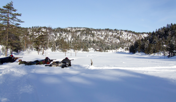 treningsaktivitet på skytebanen. Det er satt opp oppslag på skytebanen, og