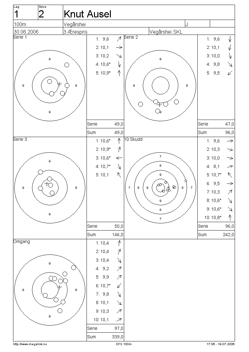 | 15 Skudd | 147 | 25 Skudd | 241 | 35 Skudd | 340 | |||||||||||||||||||||||||||||||||||||||||||