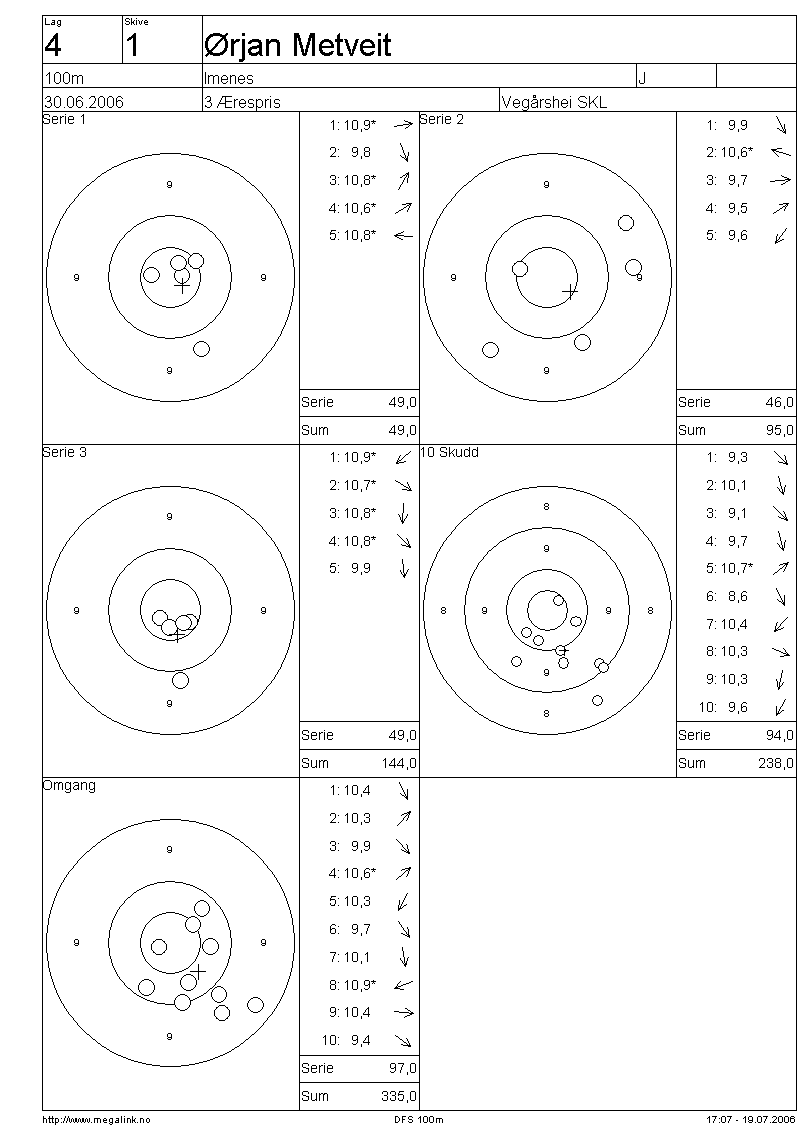 | 15 Skudd | 144 | 25 Skudd | 238 | 35 Skudd | 335 | |||||||||||||||||||||||||||||||||||||||||||