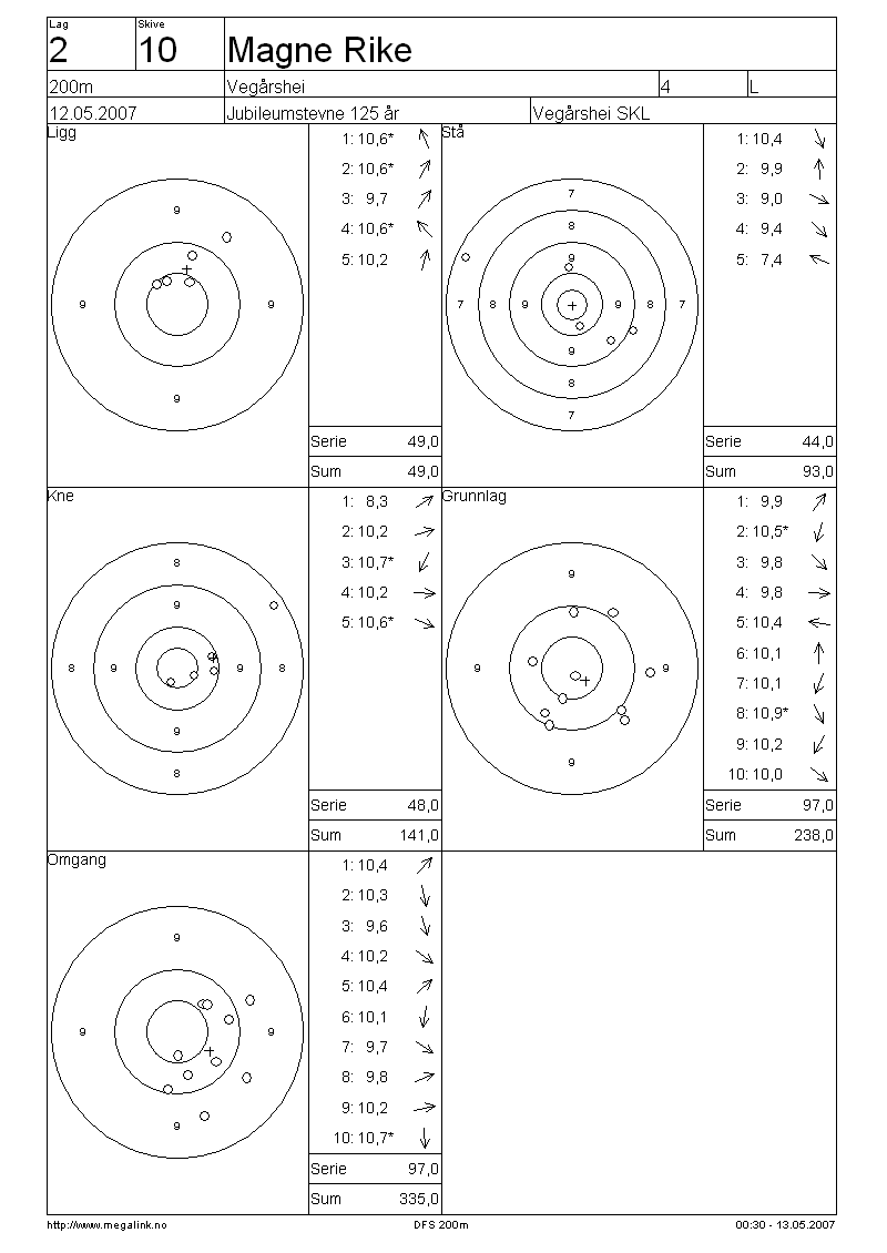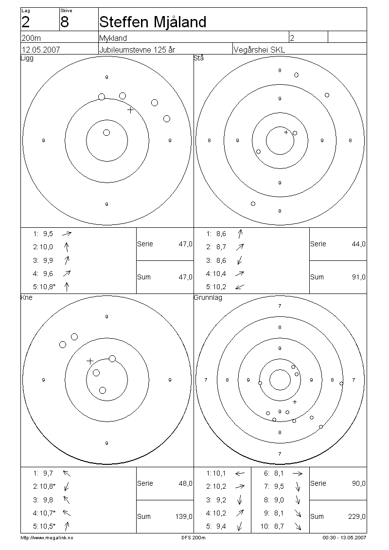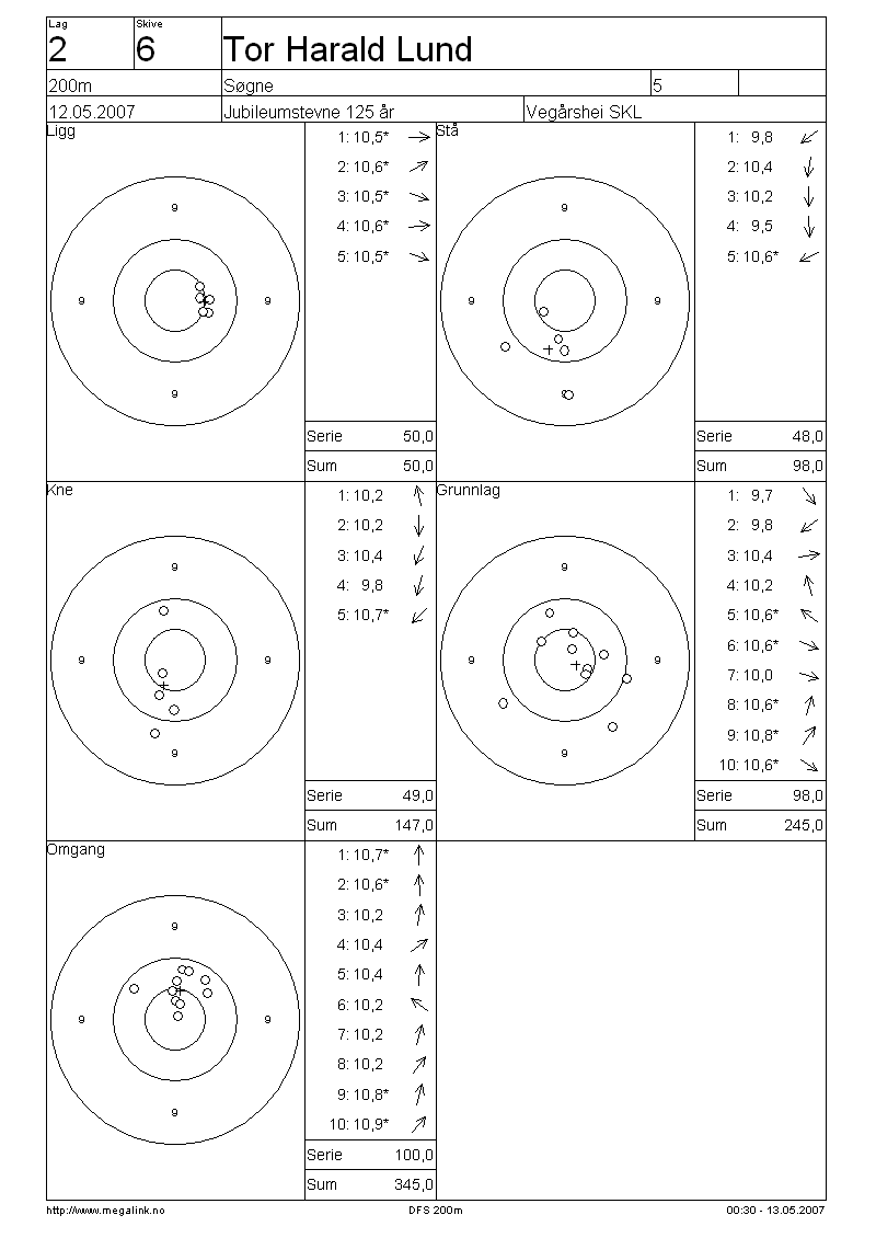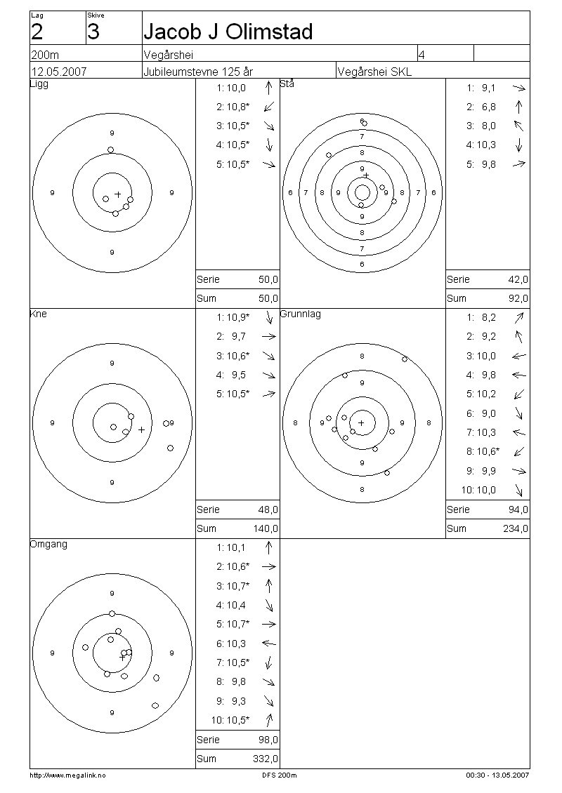 Resultater lag 2 200m
