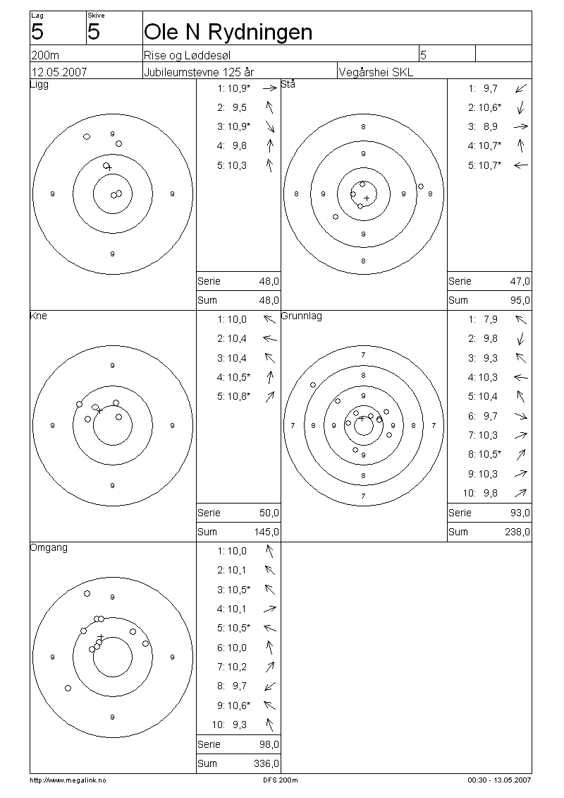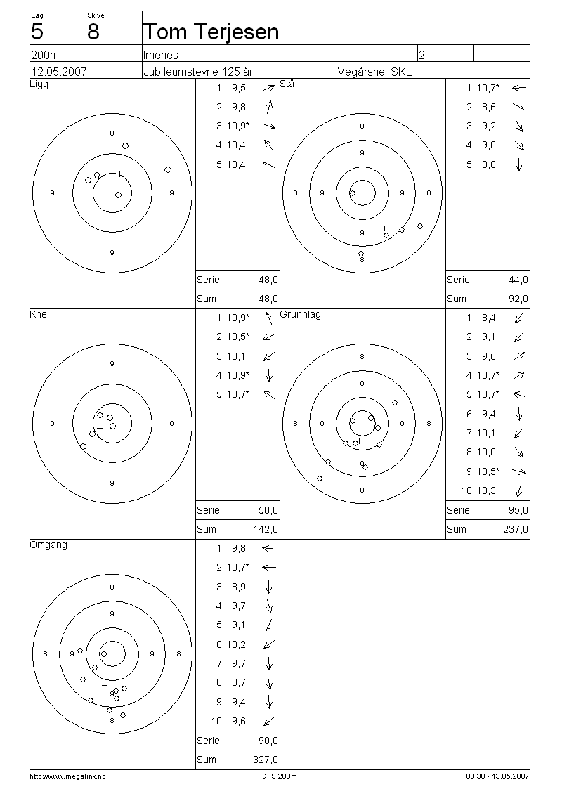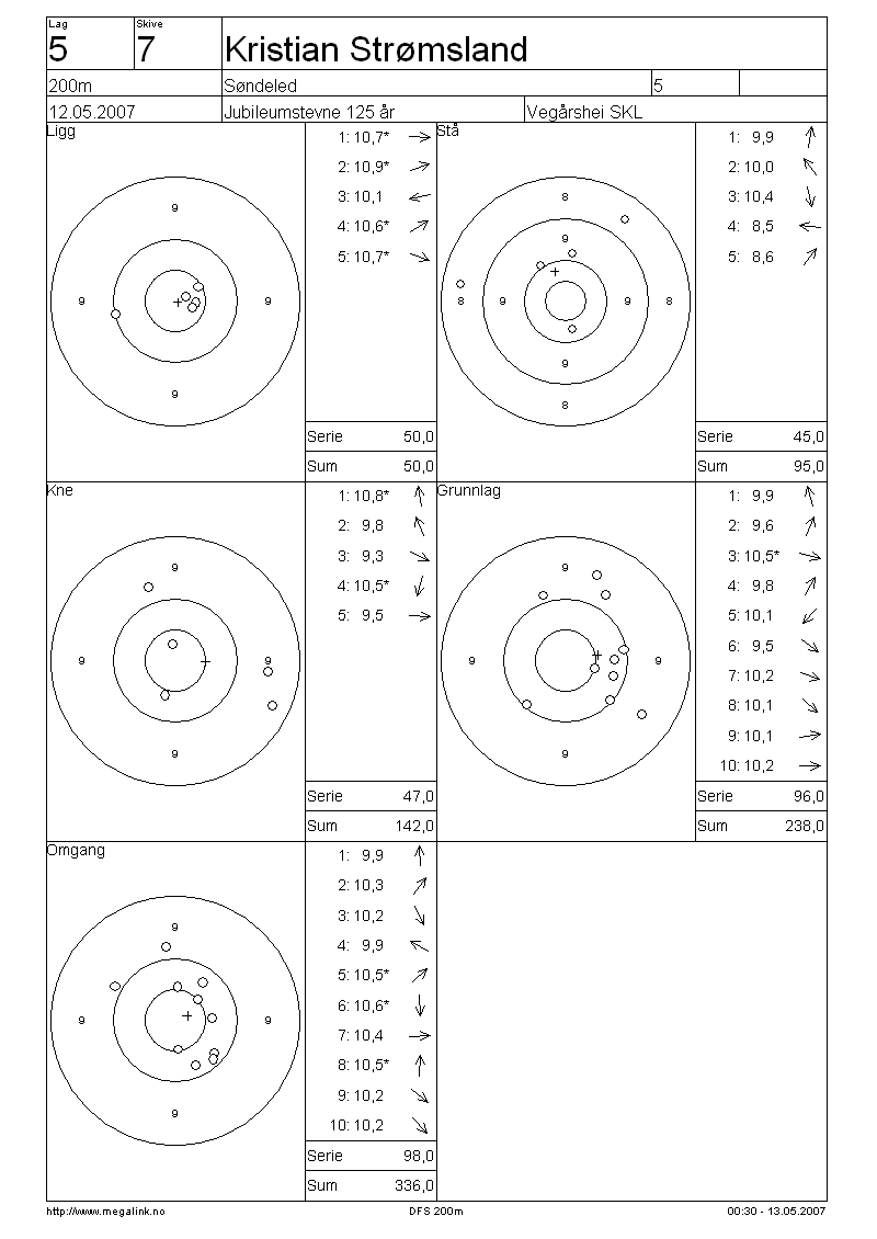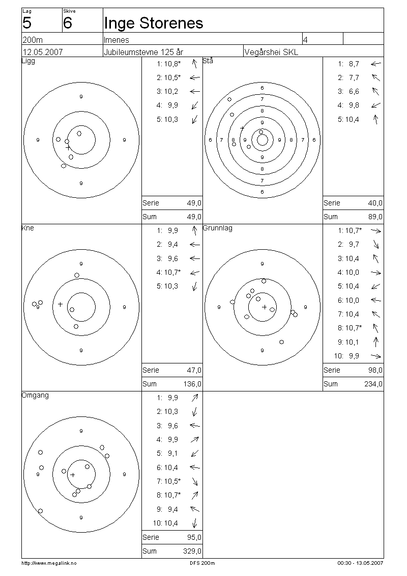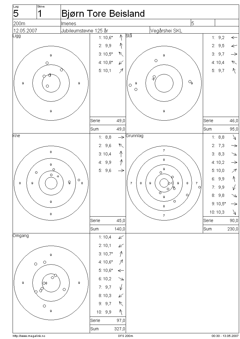 Resultater lag 5 200m