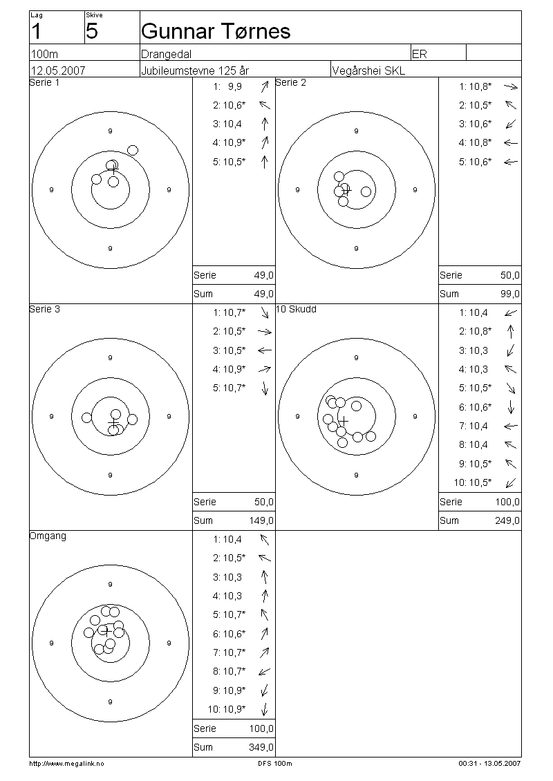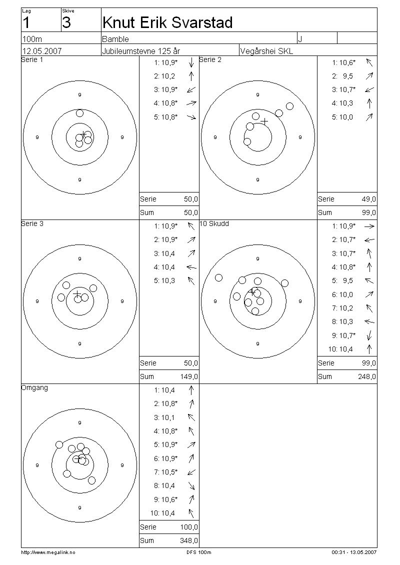 Resultater lag 1 100m