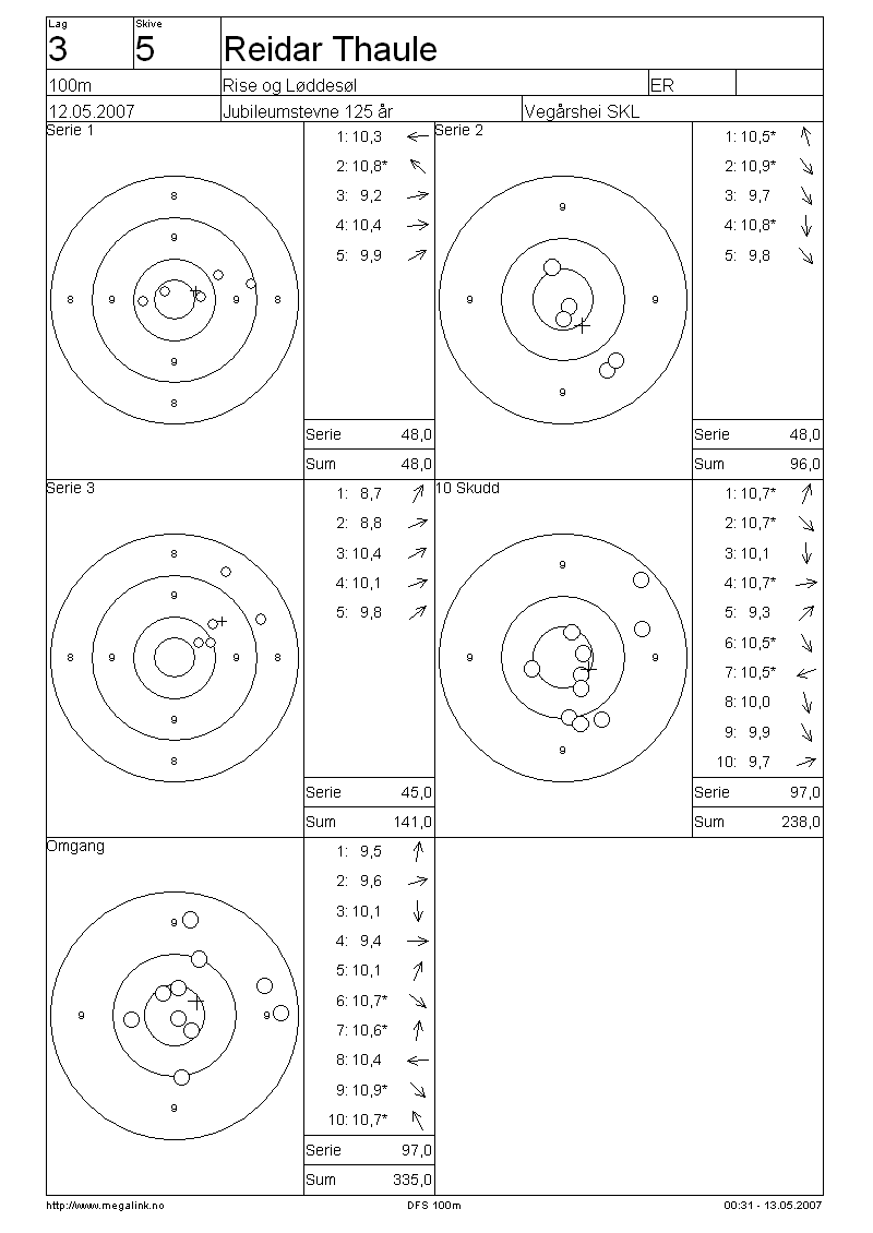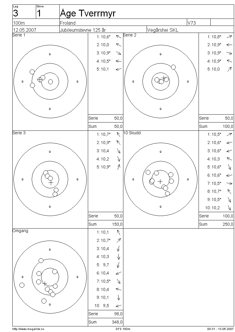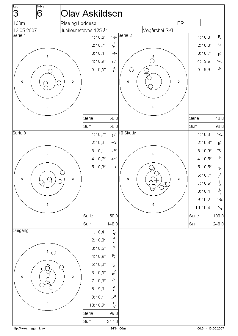 Resultater lag 3 100m